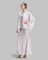 JACQUARD FLOWING CAPE BLOUSE FLOWING BLOUSE CRAFTED FROM TONAL JACQUARD FABRIC WITH A SUBTLE ORNAMENTAL PATTERN. FEATURES A ROUND NECKLINE AND A RELAXED, FLUID SILHOUETTE. DESIGNED WITH WIDE CAPE-STYLE SLEEVES AND AN ASYMMETRIC HEM THAT ADDS MOVEMENT AND ELEGANCE.A REFINED STATEMENT PIECE DESIGNED TO PAIR PERFECTLY WITH MATCHING SKIRTS OR TAILORED SEPARATES.