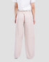 بنطال رياضي بخصر عالٍ وحزام خصر مطاطي ورباط قابل للتعديل. تصميم واسع الساقين مع تفاصيل ألواح. قماش ناعم ومريح لراحة يومية.