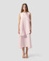 فستان ميدي بدون أكمام بتفاصيل متعددة الطبقات غير متماثلة. يتميز بياقة دائرية وقصة مريحة وحاشية واسعة. مصنوع من قماش خفيف الوزن ومحكم لإطلالة مريحة. متوفر باللونين الوردي الفاتح والبيج الناعم. مثالي للارتداء من الصباح إلى المساء.